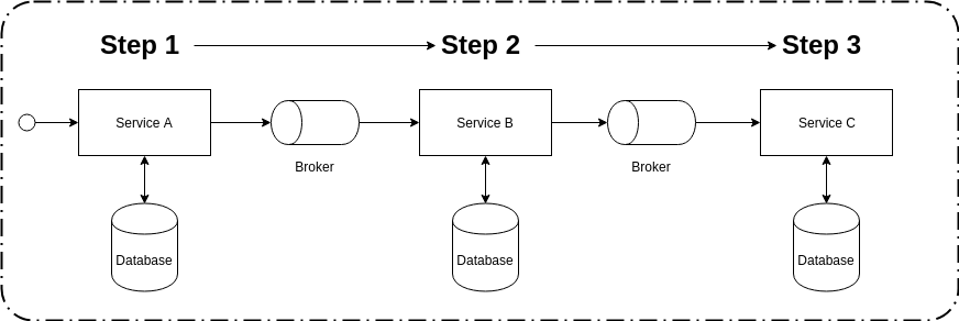 Trabalhar com sistemas distribuídos, em algum momento implica também na utilização de consistência eventual, com o intuito principal de aumentar a disponibilidade, resiliência e performance do sistema. Neste cenário, transações de negócio podem iniciar uma cadeia de operações, envolvendo diversos serviços e fontes de dados, que serão atualizados de forma assíncrona.