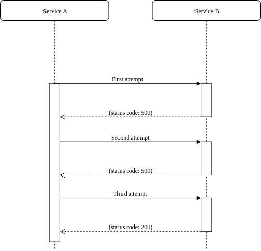 - Retry com delay incremental: Em caso de falha, é feita uma nova tentativa após um intervalo de tempo pré-determinado, e caso falhe novamente, este tempo de espera é incrementado. Isso acontece em todas as novas tentativas, aumentando o tempo em cada iteração.